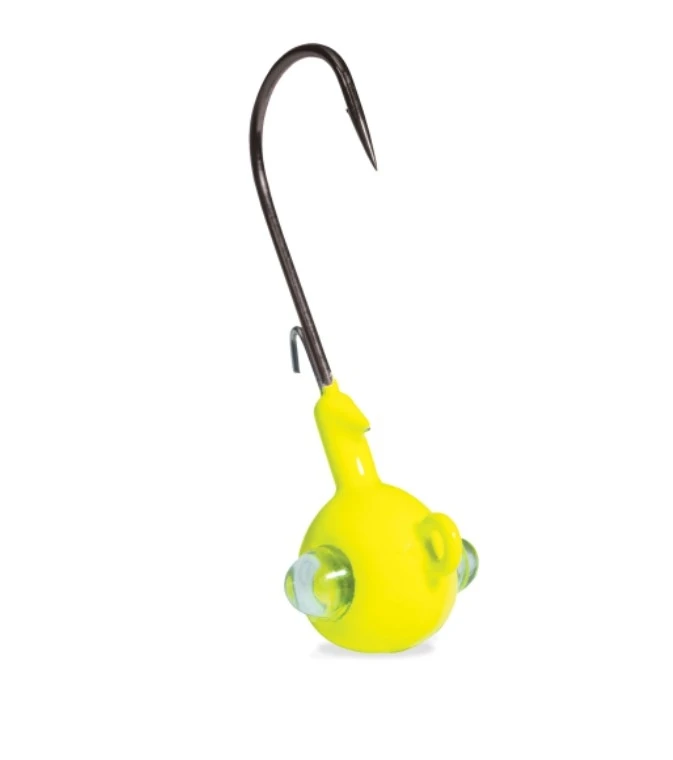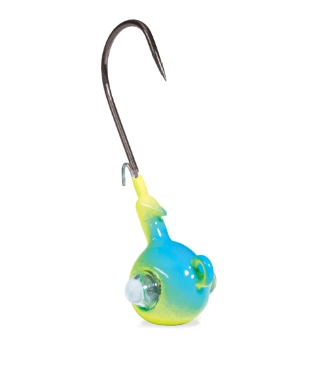 The Google Eye Jig is the combination of sight and sound to trigger more bites in all water types! Its Shockwave Rattle System has been designed to call fish in and trigger a bite. The Google Eye Jig can be rigged with your favorite Kalin’s plastics, or with live baits, making it one of the most versatile fish catching lures in your tackle box. Cast it, Jig it, Twist it, Rip it, or use a slow steady retrieve along the bottom to match the mood of the fish. The high carbon steel Katana hook, colored in black, is precision sharpened, and hardened to ensure a piercing hookset. The life-like rattling jig head features a glass eye to reflect light and add additional visual dimension and action to the jig. Specially selected color patterns have been chosen to grab the fish’s attention, and put more fish topside. Big fish don’t stand a chance – The Google Eye Jig is sure to become the new standard by which all other jigs are measured.