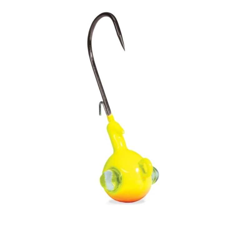 The Google Eye Jig is the combination of sight and sound to trigger more bites in all water types! Its Shockwave Rattle System has been designed to call fish in and trigger a bite. The Google Eye Jig can be rigged with your favorite Kalin’s plastics, or with live baits, making it one of the most versatile fish catching lures in your tackle box. Cast it, Jig it, Twist it, Rip it, or use a slow steady retrieve along the bottom to match the mood of the fish. The high carbon steel Katana hook, colored in black, is precision sharpened, and hardened to ensure a piercing hookset. The life-like rattling jig head features a glass eye to reflect light and add additional visual dimension and action to the jig. Specially selected color patterns have been chosen to grab the fish’s attention, and put more fish topside. Big fish don’t stand a chance – The Google Eye Jig is sure to become the new standard by which all other jigs are measured.