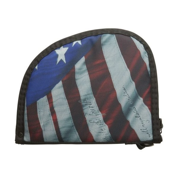 Made in the USA, the Victory Auto fit 1-Pocket Handgun Case features a stars and stripes pattern so you can show your support of the 2nd Amendment. The exterior is made of rugged Endura fabric with a soft knit interior lining, and the case features thick foam padding, a storage pocket, and is lockable.