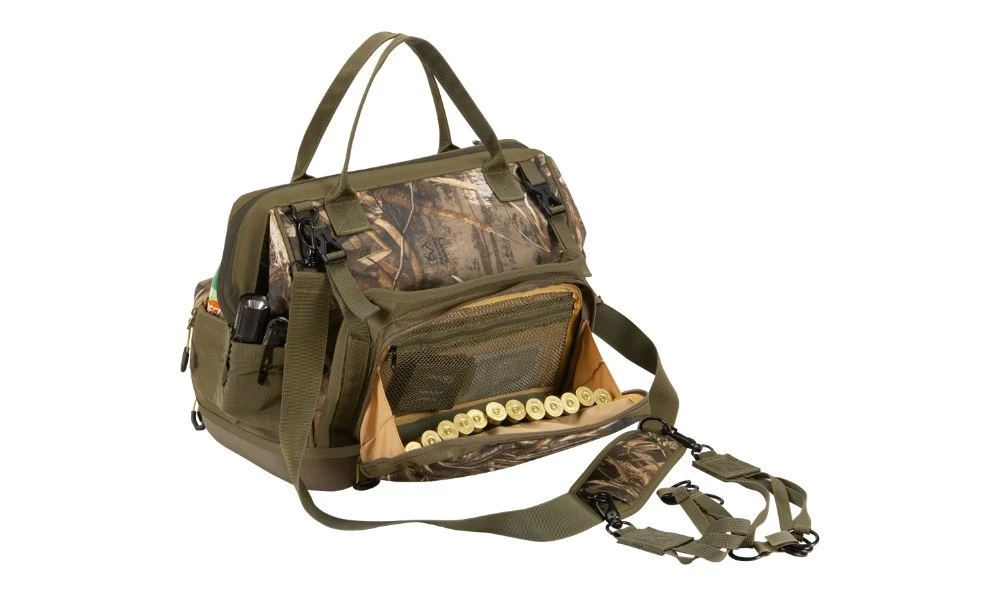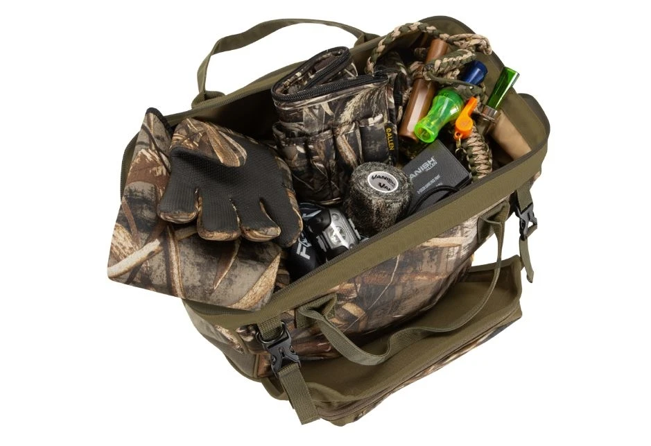 If you’re hunting out of a duck blind, timber, or even a kayak the Gear Fit Pursuit™ Punisher™ Waterfowl Blind Bag by Allen is an easy access wide opening gear bag. Designed to keep your waterfowl gear upright and dry with its molded base. This bag has 1,930 Cubic Inches of carrying capacity and can hold the ammo you need for the day, your calls, and any other accessories you need.