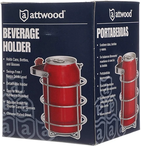 Formed, chrome-plated steel drink holders are ideal for boats, cars, and RVs. Includes a gimbaled surface-mounting bracket that keeps drinks level to prevent spills. Includes mounting screws.