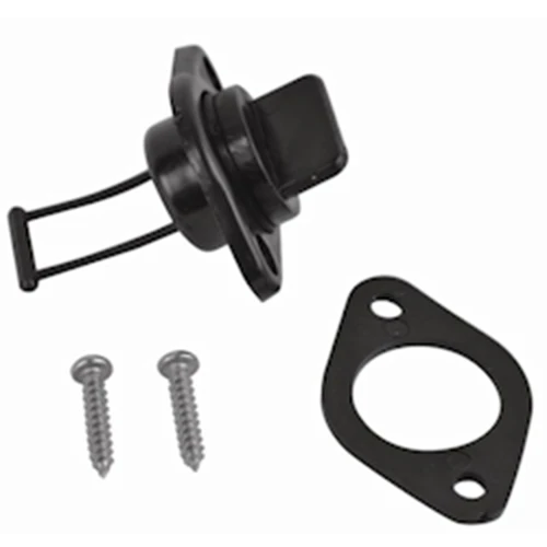 Attwood Drain Plug and Receiver Kit reliably provides sure closure of a drain. This ¾-inch diameter 1-piece plug screws into the threaded receiver for full drain closure. The plug has a convenient molded retaining strap. This kit is made of molded black plastic, and it includes installation screws and an elastomeric gasket for a watertight fit. Attwood Corporation has been an award-winning leader in engineering, testing, and manufacturing the highest quality marine products for over 100 years. We deliver safe and reliable lighting, fuel systems, water systems, seating & pedestals, swim ladders, custom upholstery, and general marine accessories that are easy to install and meet regulatory compliance.