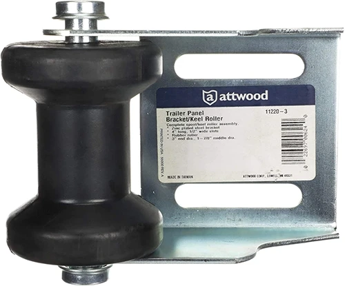 The Attwood Roller Panel Spool/Keel Assemblies feature a complete system with the bracket and roller assembly in one unit. The bracket is made of form, zinc-plated steel with half-inch wide slots for adjustments and easily mounts to trailer cross-roller assemblies.