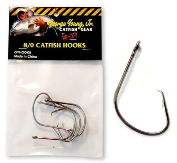 George Young JR, 8/0 catfish hook, super strong! Super sharp! And the offset is sure to hit its mark.