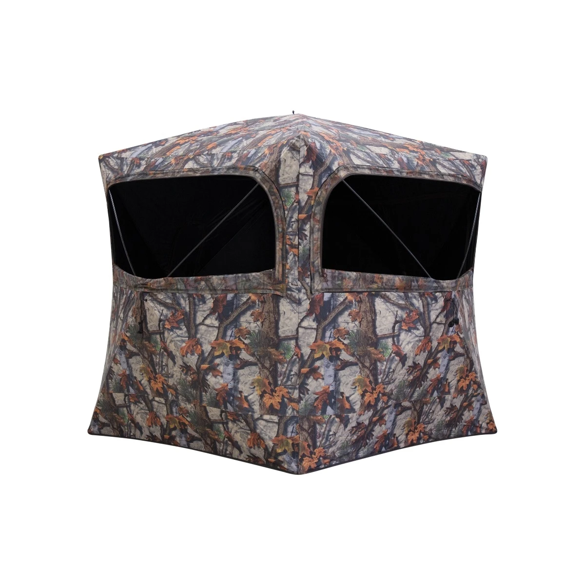 The Grounder 350 Hub Blind, a best seller, has plenty of room for small group hunts. This blind can comfortably fit three people with its 90” x 90” shooting width and the 80” height allows you to shoot while standing. When you find the perfect spot, simply pop open and you’re ready to hunt. The large, zippered windows cover three sides of the Grounder 350, offering excellent viewing and can be opened or closed in multiple arrangements to suit any hunter’s needs. The window mesh is shoot-through and can easily be replaced when needed.