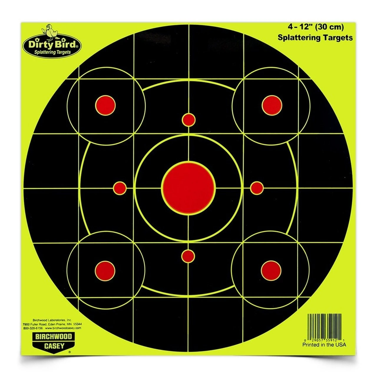 THESE TARGETS OFFER YELLOW REACTION TO THE CLASSIC DIRTY BIRD SPLATTERING PERFORMANCE. THE 12 INCH ROUND SIGHT-IN TARGET IS DESIGNED TO BE THE BEST OF BOTH WORLDS; A CLASSIC BULL’S-EYE WITH A FUNCTIONAL SIGHT-IN PATTERN.