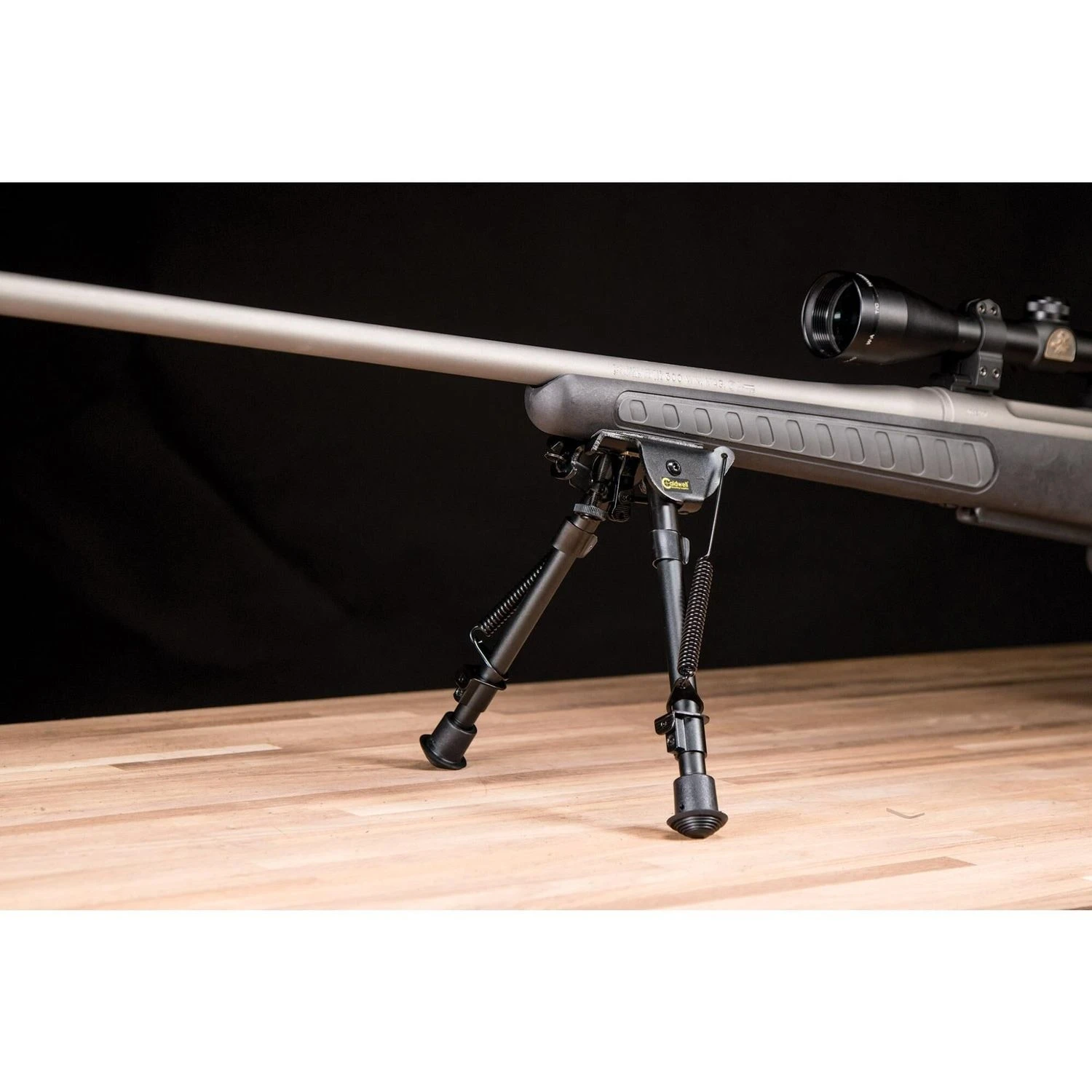 The Caldwell XLA Bipods provide a stable shooting support that conveniently attaches to almost any firearm with a sling swivel stud. XLA bipods solidly clamp to the swivel stud of the firearm and remain firmly in place without swiveling or twisting while shooting. The lightweight aluminum design adds minimal weight and deploys quickly, with legs that instantly spring out to the shooting position with the touch of a button. The legs are notched for easy indexing to a specific height. There is a connection point for sling attachment and multi section legs that collapses forward allowing for convenient carry of the firearm. Soft rubber feet provide enhanced stability, while the padded bipod base protects the firearm’s forend.