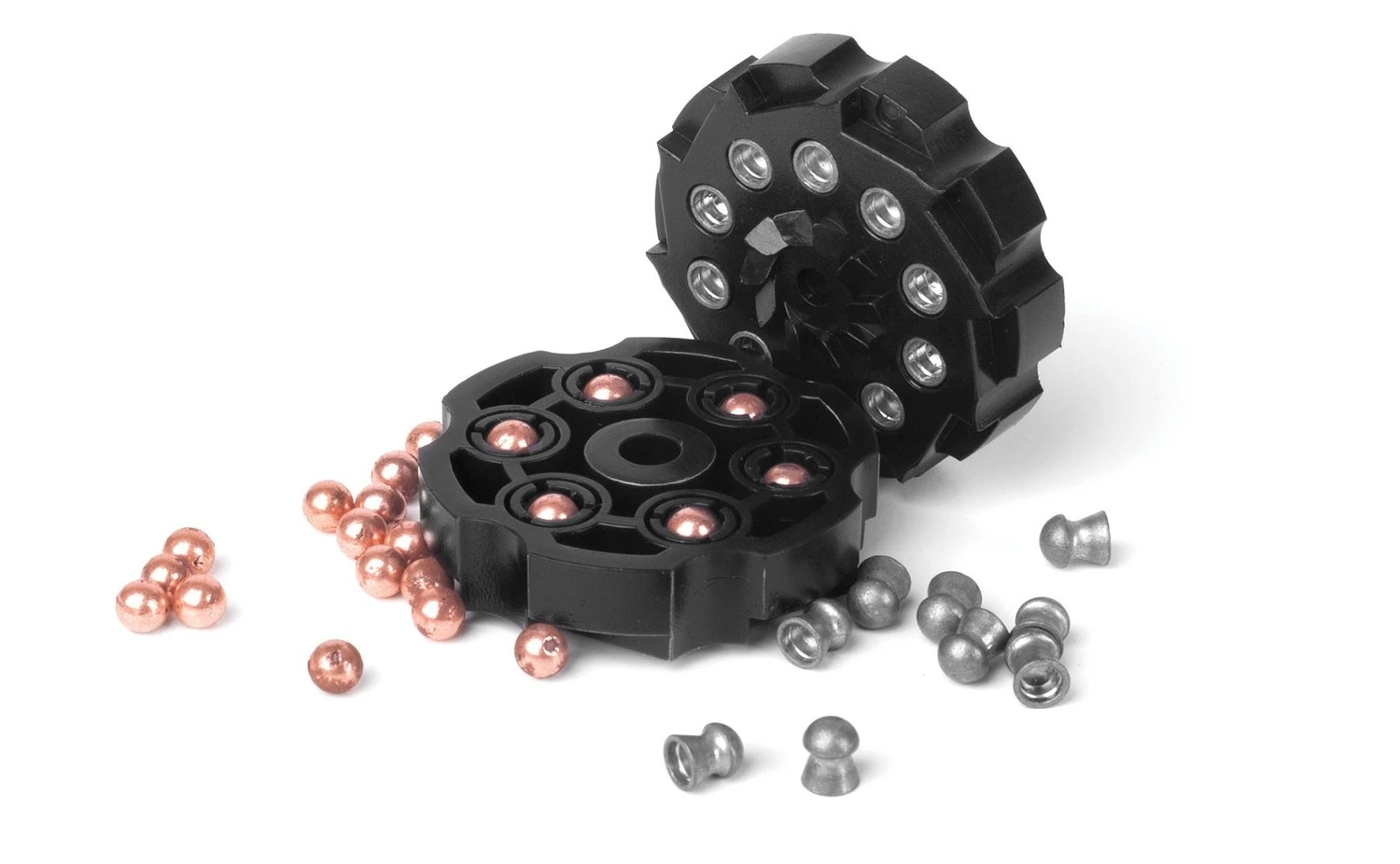 The Vigilante is a double action, semi-auto revolver that shoots pellets and BBs. Included is a 10-shot pellet clip and a 6-shot BB clip. It’s powered by CO2 and shoots pellets up to 435 fps and BBs up to 465 fps through a 6-inch rifled steel barrel. Additional pellet clips (407T) & BB clips (408T).