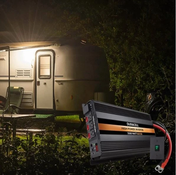 Ideal for outdoor recreation, mobile entertainment and job sites, the Duracell 3000 Watt Inverter supplies up to 3000 Watts of continuous power and 6000 Watts of peak power using your car’s battery current. This rugged inverter converts vehicle power into usable household AC power.