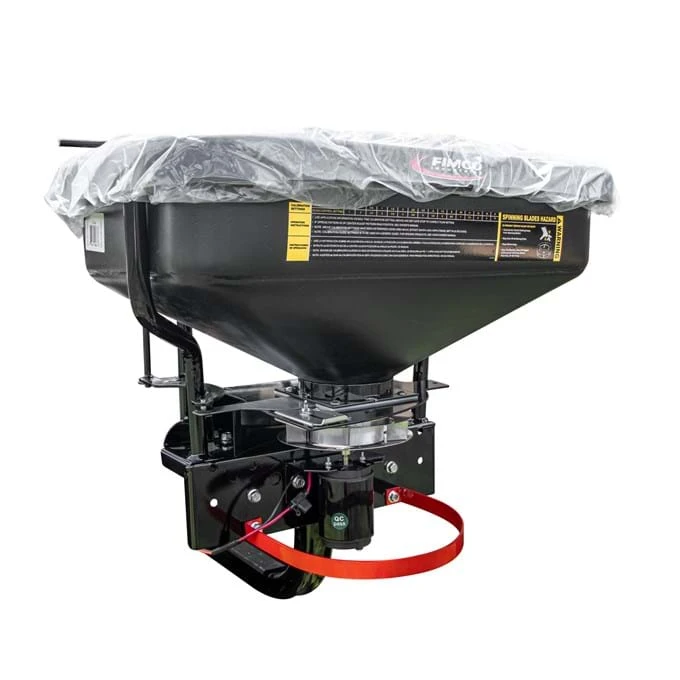The FIMCO ATV/UTV Dry Material Spreader with Intregal 2″ Receiver Hitch Mount easily slides into standard 2″ (Class 3) receiver on pickups, UTVs and ATVs. Attach receiver mount to the dry material spreader frame. Then secure receiver mount to vehicle receiver with 5/8″ retaining pin, hook up power cables and you are ready to spread. Easily disperses seed, dry granular fertilizer, pesticides, ice melt and other dry materials. The 12 volt motor with variable speed control allows you to vary the spread width from 5 feet to 45 feet. Versatile and easy to use, the FIMCO ATV/UTV Dry Material Spreader features a 2.2 cubic foot capacity poly hopper that holds up to 145 lbs of material and a stainless steel radial 6 blade fan.