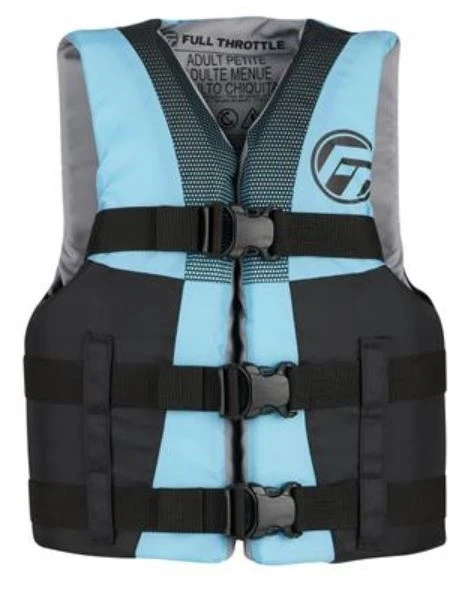 The Full Throttle teen nylon life jacket is designed with a deep neckline for a more comfortable fit and the large armholes allow for better mobility on the water.