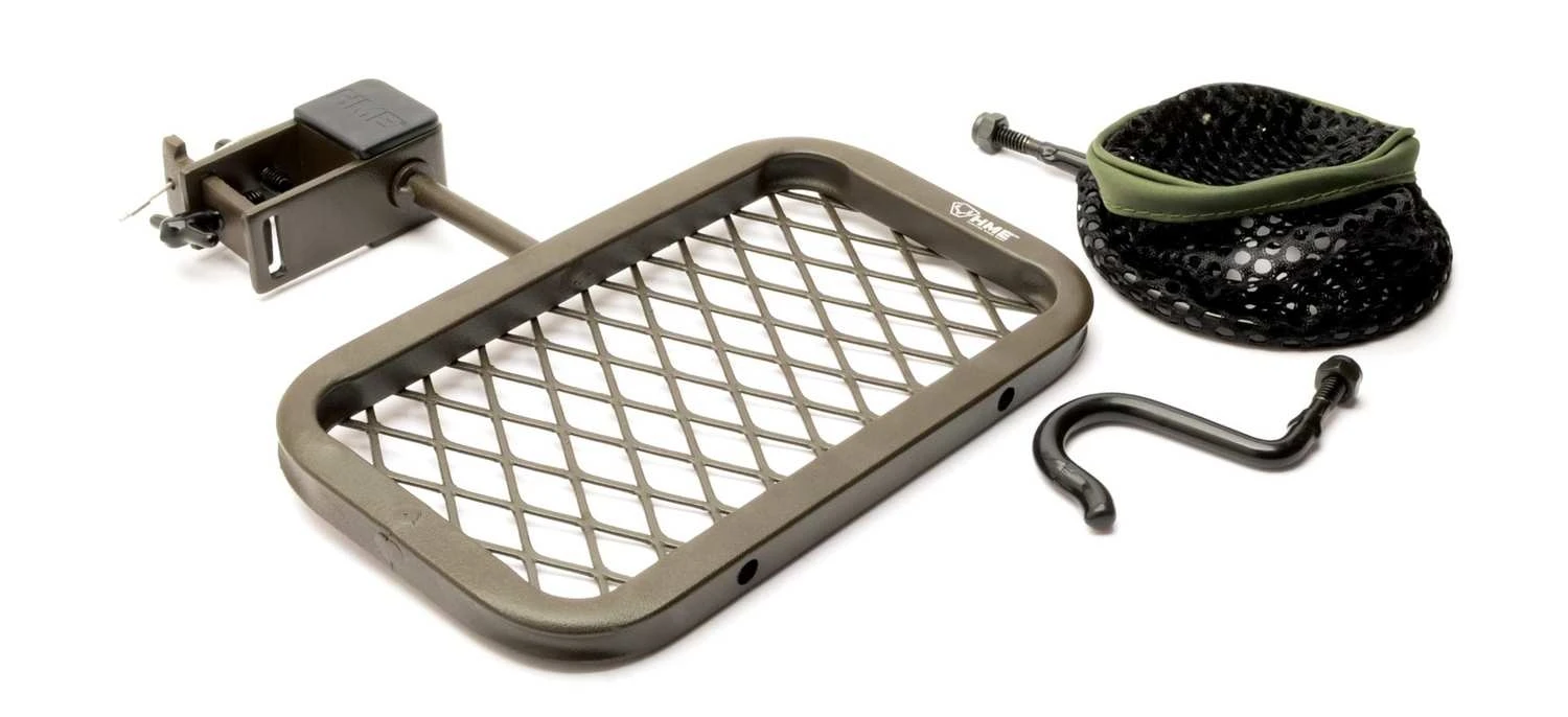 The Universally-Mountable Accessory Shelf can be securely mounted to most ladder or climber treestands in seconds utilizing the same unique slide-n-lock mounting system.