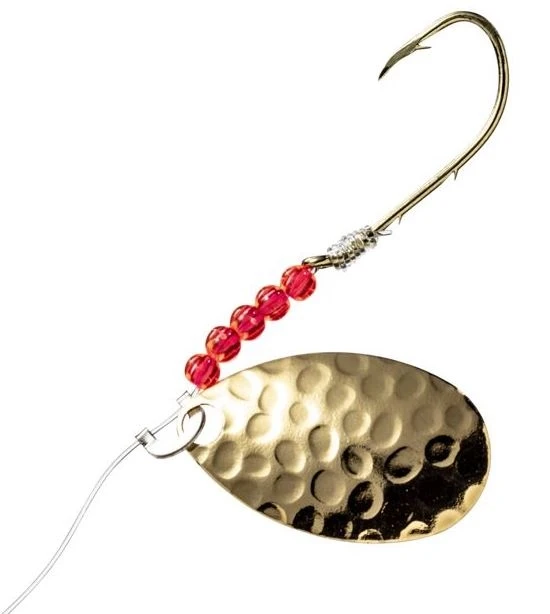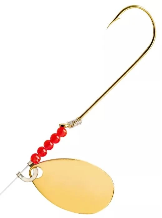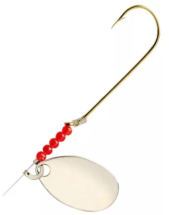 Drift or slow-troll with minnows or crawlers, and let the single-hook Little-Joe® Red Devil Spinner rig add that crucial touch of eye-catching flash. Its free-wheeling Indiana blade flashes and thumps in the water, drawing hungry walleye and perch in close. Fitted with an ultra-sharp Aberdeen hook, this spinner harness holds fast into hooked fish. 36″ premium monofilament leader.