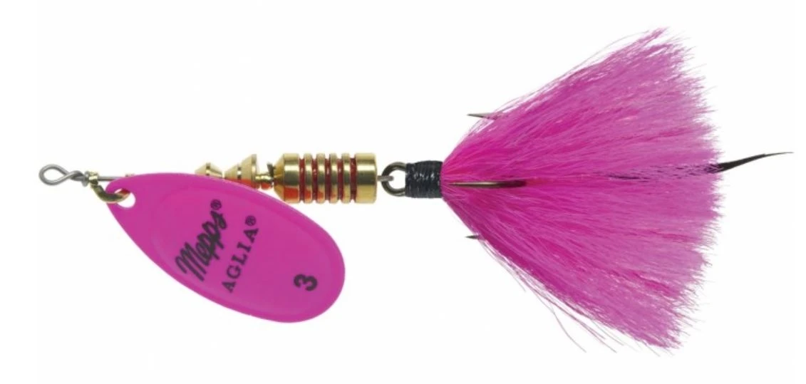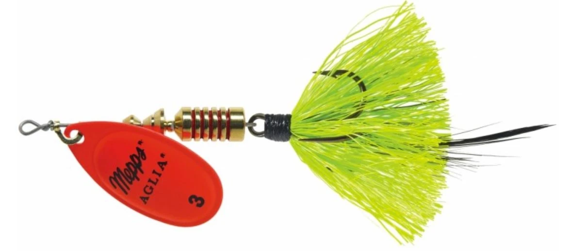The Mepps Aglia spinner is the original French spinner. It is the World’s #1 Lure. More trophy fish have been caught on the Mepps Aglia than any other lure. The Mepps Aglia is extremely popular with fishermen world-wide because it will catch just about any freshwater fish and many species of saltwater fish.