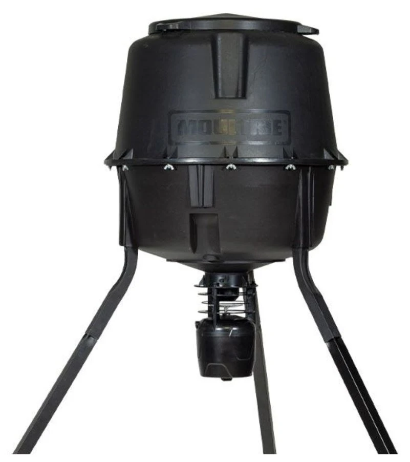 The Deer Feeder Pro II Tripod is one of the most economical options for a reliable wildlife feeder. The tough polymer hopper will hold more than 150 pounds of corn and features the Pro II Hunter Feeder Kit with an adjustable funnel, metal spin plate, ABS plastic housing, feed-level estimator, battery indicator and external power port. The feeder kit will feed up to 6 different times per day from 1 to 20 seconds per feeding. The Deer Feeder Pro II is easy to fill with the fill opening sitting at 5.5 ft. tall.