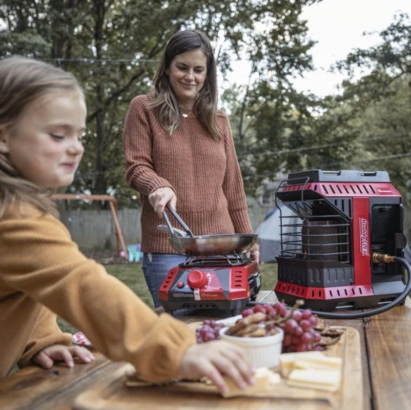 The 5,000 – 8,000 infini-variable™ controls and all new fiber mesh burner make cooking and cleanup a breeze. This portable cooker connects directly to the Buddy FLEX™ Heater using the integrated 28″ hose and custom quick connect fitting ensure your safe and protected cooking in any environment.