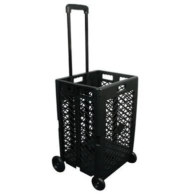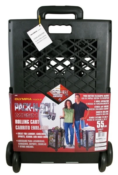Great for laundry, groceries, sport, school & much more. Folds flat to 3″ thick. Push buttom telescopic handle and 4 wheel operation stores anywhere.