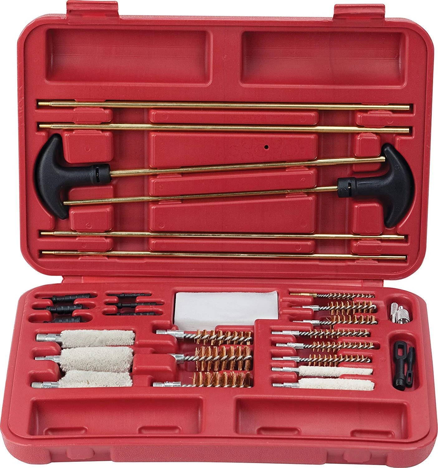 Rugged, blow-molded case features specific slots for every piece. Extra cavities allow you to add chemicals and accessories. Outers® 32-Piece Universal Gun Cleaning Kit includes two brass rods, nine brushes, five mops, six jags, two slotted tips, and 50 patches to accommodate almost any rifle or pistol.