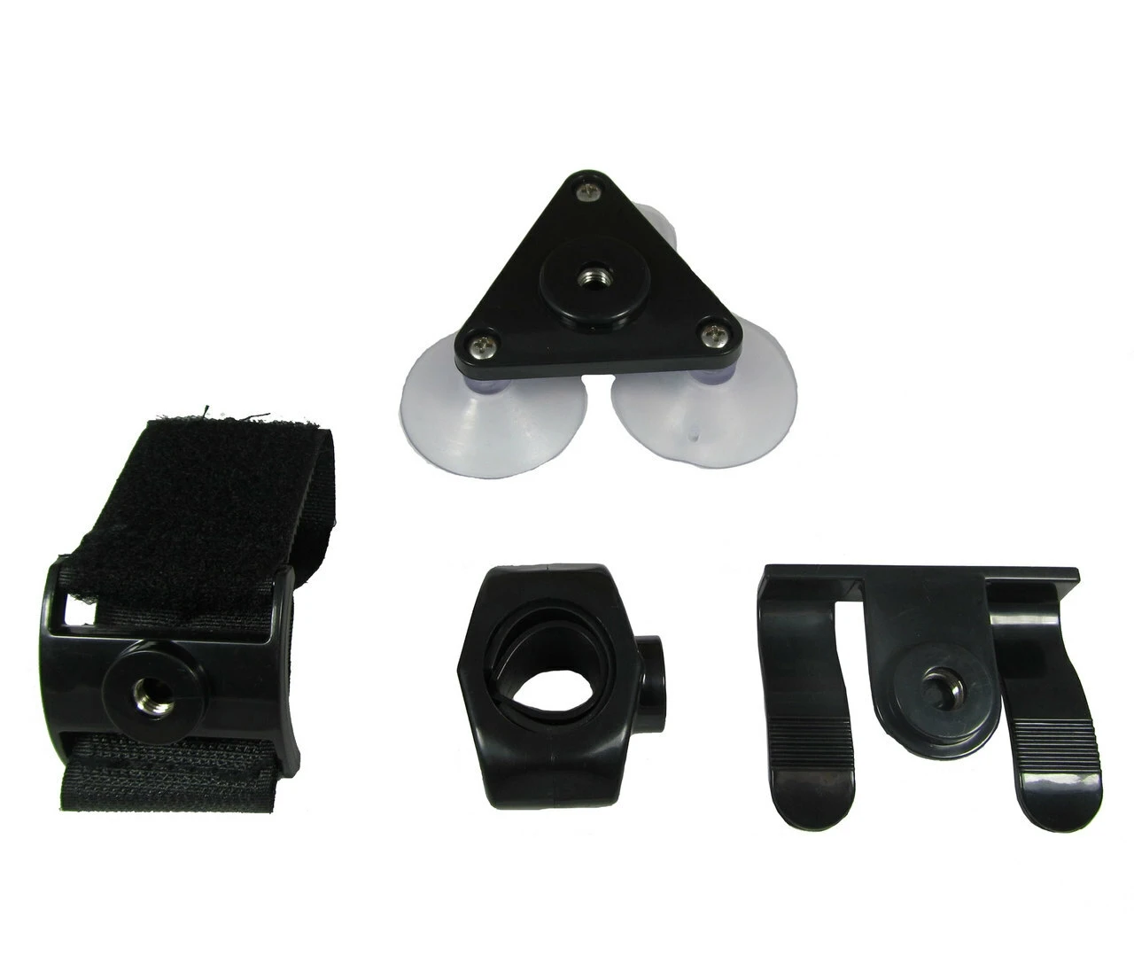 - Suction cup – features 3 suction cups that will mount to most flat, smooth surfaces (we recommend no more than 2lbs of weight)