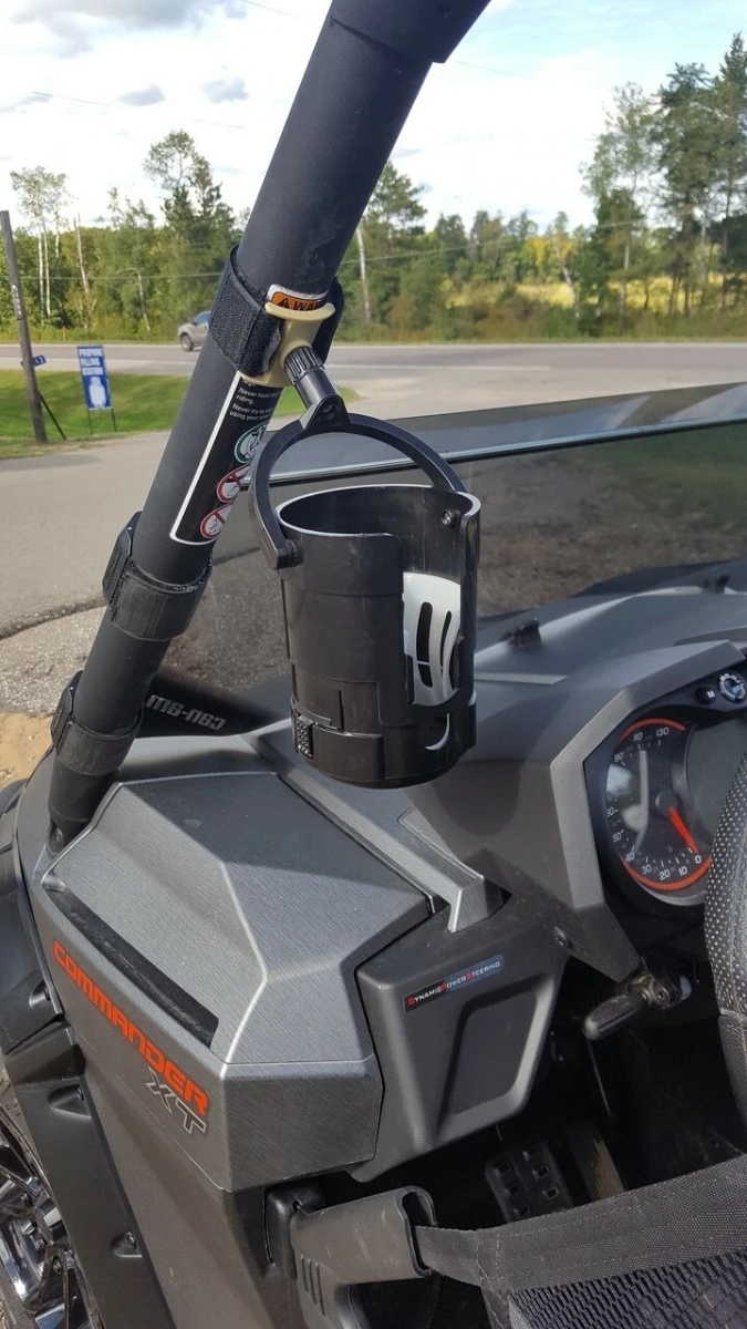 - Velcro Mount – Square tubing, round tubing or oversized tubing. Vertical or horizontal mounting. This attachment features a rubber patch to keep your beverage right where you want it.