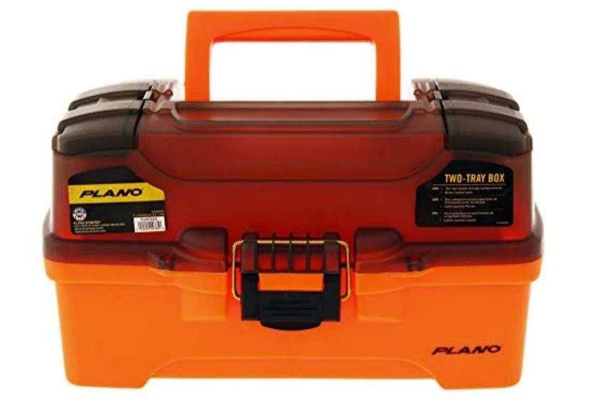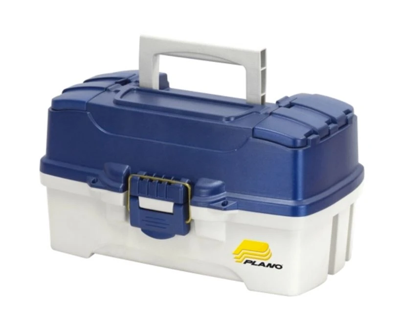 The Plano® 2-Tray Tackle Box features cantilever trays with 14 to 25 compartments. A brass-bailed latch keeps contents secure, and 2 topside storage areas provide quick access to your most often used items. The cantilever tray extends open to showcase its contents. A collapsible handle makes the box easy to carry and store.