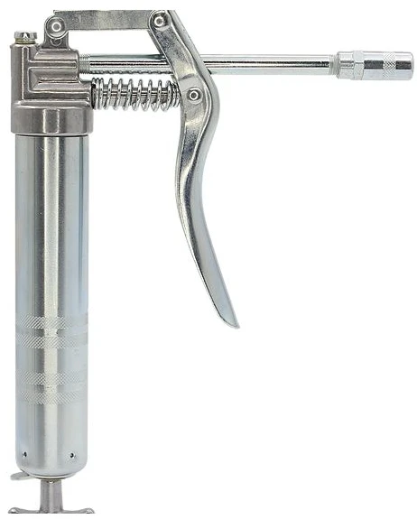 Small, versatile gun allows for front or top pipe placement. Barrel takes 3 oz. grease cartridge or can be suction loaded. Includes push lock plunger, die cast T-handle that locks in place for loading, lock plunger, die cast T-handle that locks in place for loading, 5-1/2″ straight grease pipe, standard-duty coupler and 3 oz. cartridge of LubriMatic grease. Develops up to 4,500 psi.With LubriMatic Marine Corrosion Control and Trailer Wheel Bearing Grease.