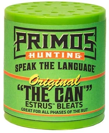 Use the Primos Original Can Estrus Bleat Deer Call during the pre-rut, rut, and post-rut to attract nearby Whitetail, Blacktail, and Mule bucks looking to breed. The #1 Deer Call of all time will help you call in bucks with its tried-and-true original Estrus Bleat sound. Features a raised, Quiet-Carry thumb hole for a consistent sound and ensured seal. It also has a True Grip design so you won’t drop it in the field or from your stand.