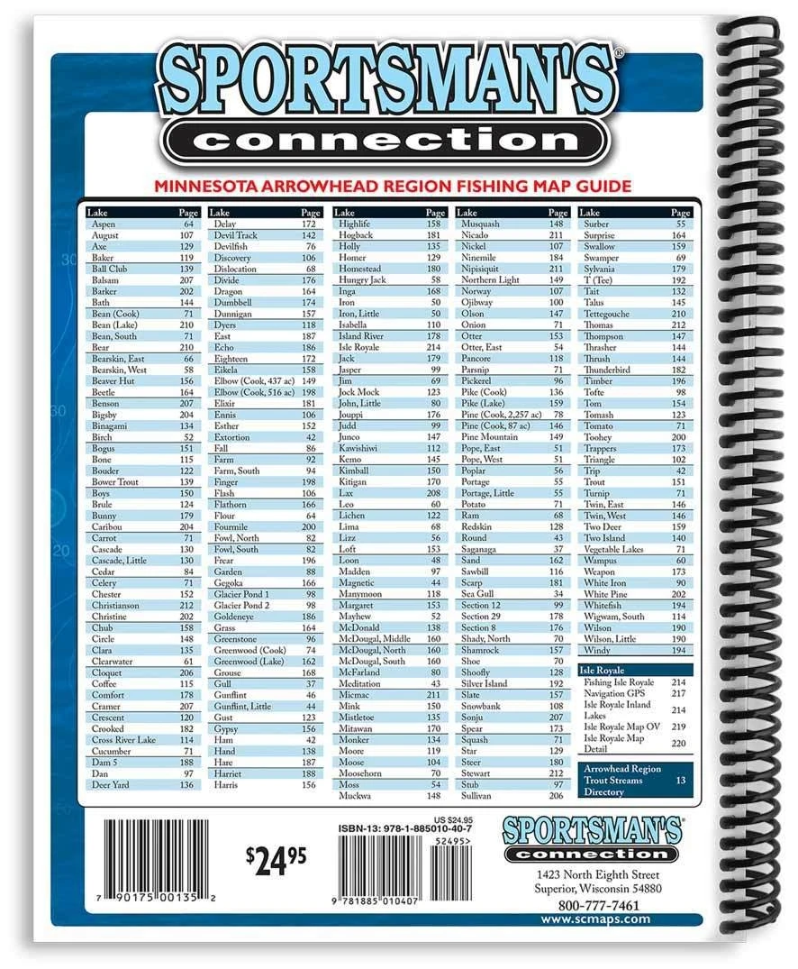 Newly updated, the Minnesota Arrowhead Region Fishing Map Guide is a thorough, easy-to-use collection of detailed contour lake maps, fish stocking and survey data, and the best fishing spots and tips from area experts.