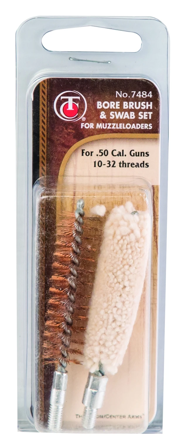 A bronze bore brush and cotton bore swab to handle your muzzleloader cleaning chores. Standard 10-32 threads, for .50 Caliber firearms.