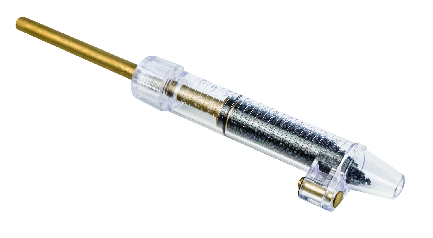 Allows you to see the exact level of powder in the tube. Eliminate the guesswork of loading consistent charges with this handy, lightweight measure. Includes loading spout that swivels out of the way to fill the measure. Locking shaft is a cinch to adjust. Prevents pouring partial charges caused by bridging of powder. Graduated in increments of 5 from 15 to 125 grains. *NOTE: Powder measures & flasks are to be used with Black Powder or an approved black powder substitute such as Pyrodex. All implements must be used in accordance with the instructions printed on their packaging and those found in our Safety & Instruction Manual. If you don’t have a manual for your Thompson/Center firearm they are available free by contacting the company or via download from our web site.